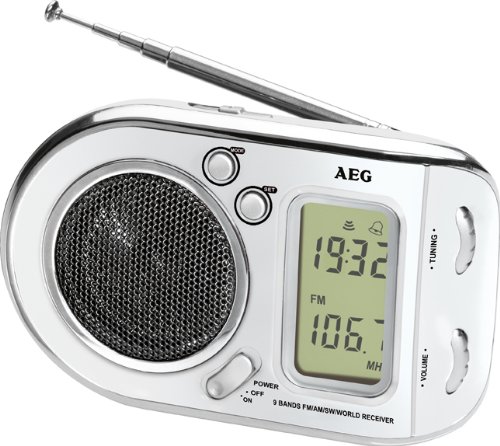 AEG FM/MF/HF Radio de voyage WE 4125, blanche radio multibandes (1x FM, 1x MF, 7x HF), 9 bandes de freq., affichage fréquence numérique, écran LCD, antenne télesco- pique, haut-parleurs de haute qualité, fonction horloge, interrupteur, reglage du volume, pile: 2 piles AAA - non livrées (400467)