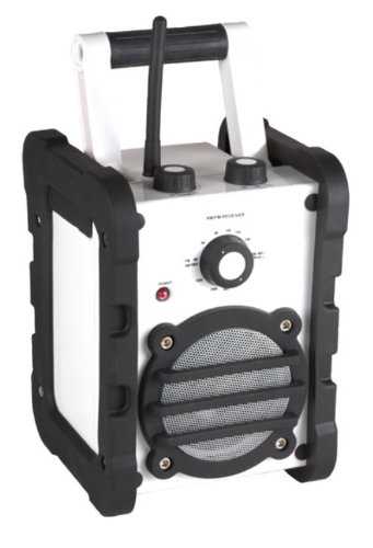 Radio de chantier FM, poignée de renfort, protection antichoc, câble de connexion lecteur MP3 fourni, prise casque, 1 haut-parleur.